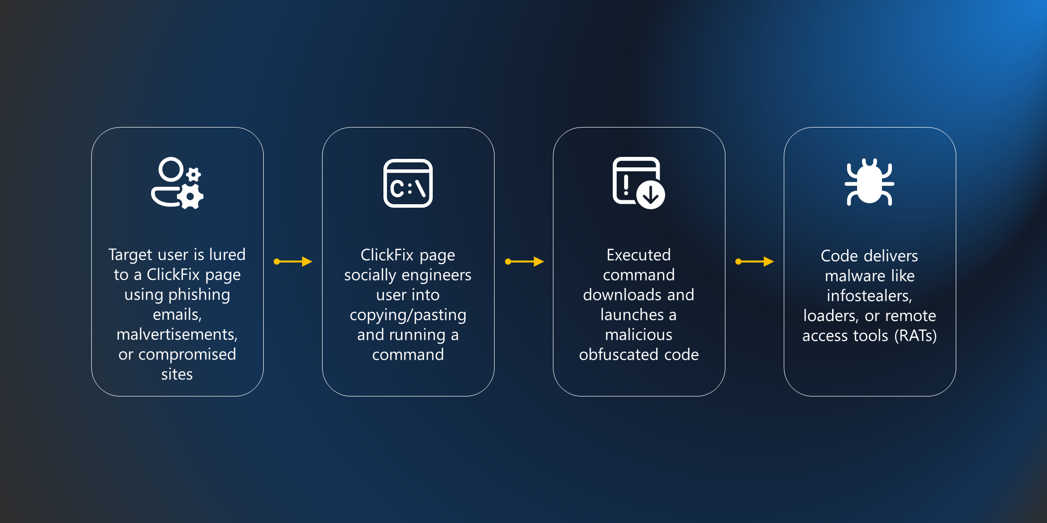 Before diving into ConsentFix specifically, it's important to understand the broader threat landscape. Microsoft Threat Intelligence has been tracking what they call the "ClickFix" social engineering technique since mid-2024, with campaigns targeting thousands of devices globally every day.